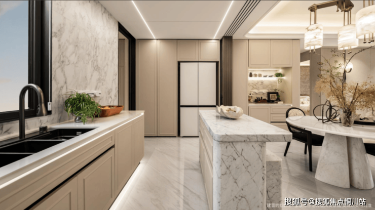 厨房还以冰箱式餐边柜,代替了常规的餐边柜,门板上做薄柜,容量和存取方便性都大大提升。