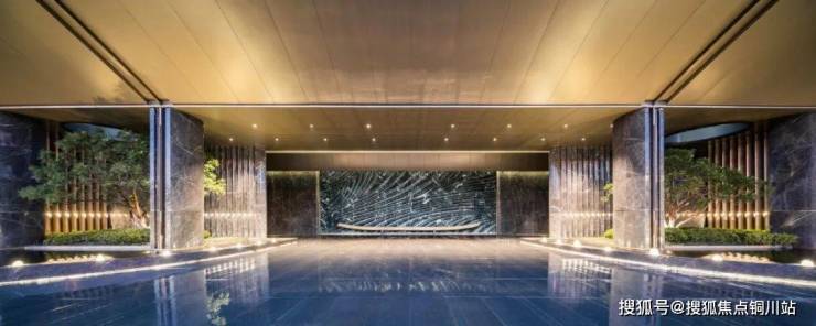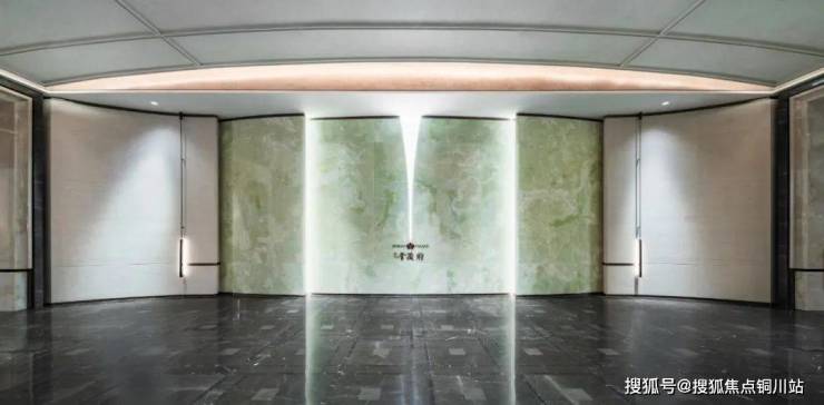 迎面约14.5米宽、4.9米高的液态大理石景墙,由全球罕见的西班牙马里奥纳灰奢石打造。