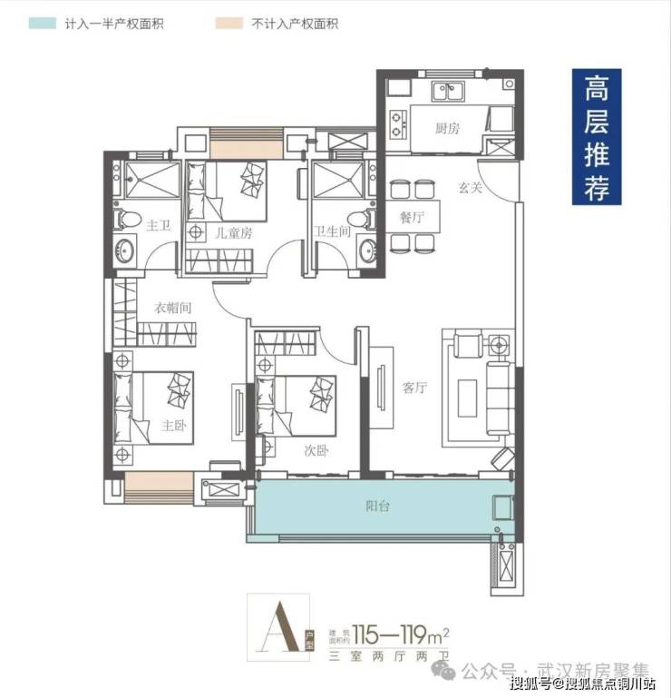 高层115平:三房两厅两卫