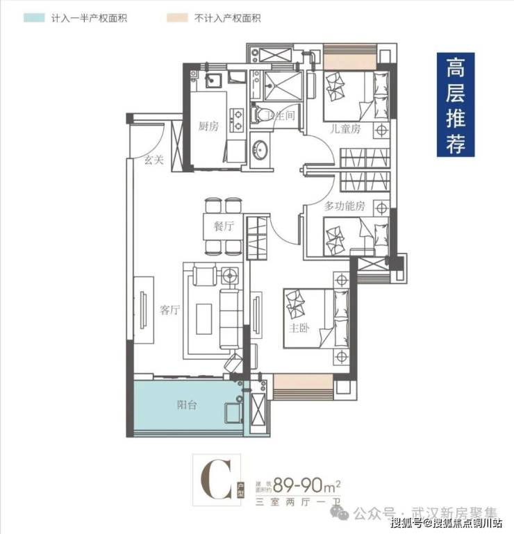 高层89平:三房两厅一卫