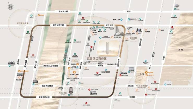 踞守长江主轴与武昌滨江商务区双核交汇处,直线距离长江公铁隧道口400米。双万象商业(万象城+万象汇)与龙湖天街构成黄金三角,9大商业体量超百万方,改写武汉商业格局。