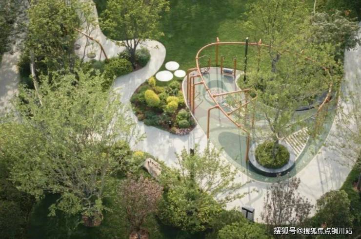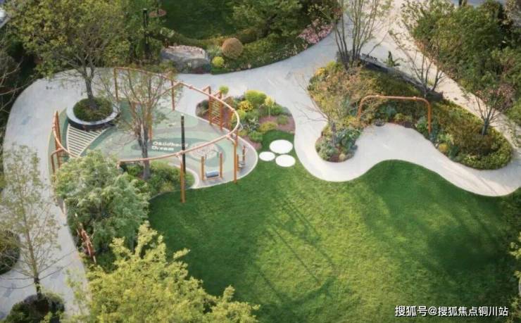 核心大草坪如柔软绿毯向四周延展,连接健身区、多功能区、商业区等,以及隐于花荫下的亲子秋千。樱花深处,休憩看台静候,春时坐看飞花,秋末独对红云。
