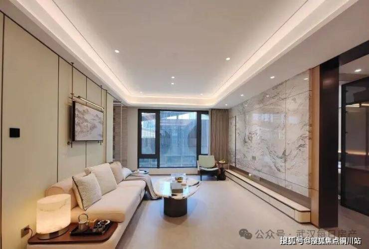 该项目也是武汉城建今年的四小龙之一,主打新中式风格,从目前的实景示范区来看,阔气大门、下沉庭院、会所等四代住宅的配置都有。