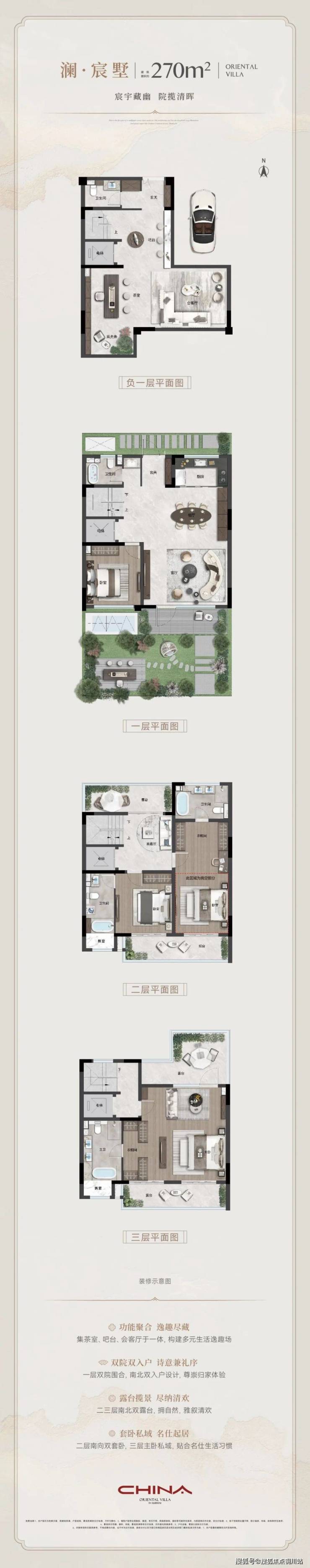 项目容积率1.0,产品定位苏高新集团“澜院”系高端力作,全案仅规划156席建面约270-300㎡联排院墅,低密布局,充分保证建筑与自然风光的相融共生。