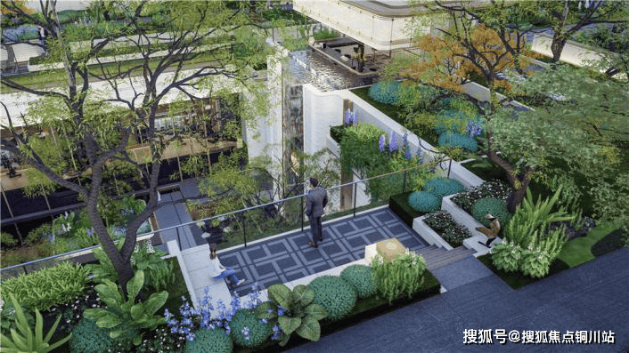 小区内部做了多重立体景观设计,层次丰富,景观视野别致,具有很强的观赏与交互价值。