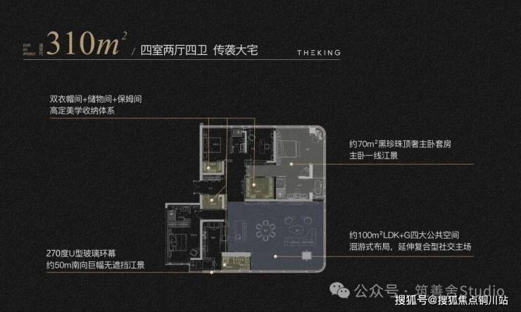 约50m 南向巨幅无遮挡江景,270°环形玻璃幕墙,长江大片尽收眼底