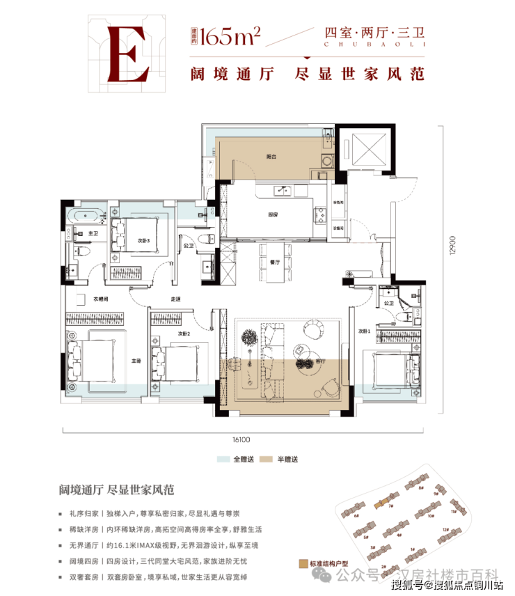 E户型丨165m² 四房两厅三卫