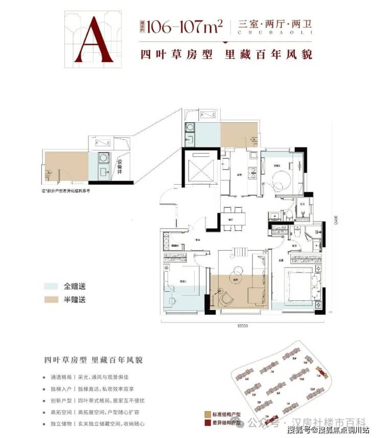 A户型丨106-107m² 三房两厅两卫