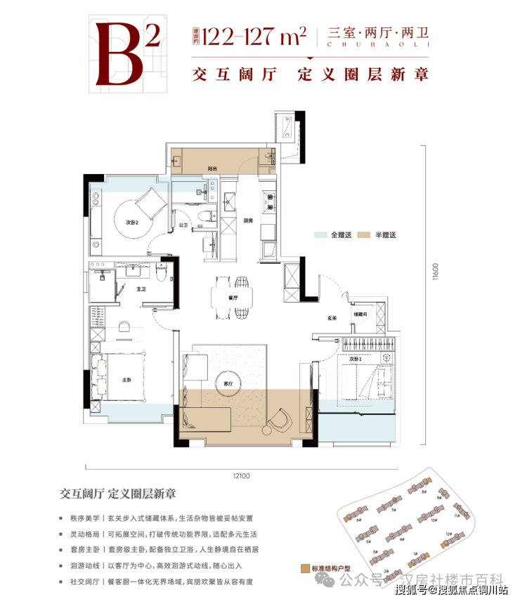 B户型丨122-127m² 三房两厅两卫