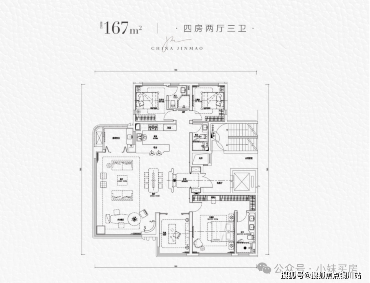 金茂樾满晴川建面约167平户型,完美贴合这一点,也难怪如此火爆了!