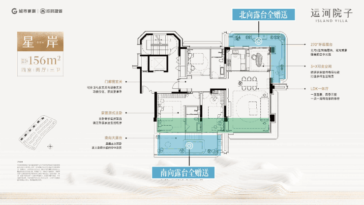 在运河院子,“露台”不是附赠面积,而是生活的主场。南向露台接阳光,北向露台纳清风,双露台设计让每一寸空间都与自然共生。