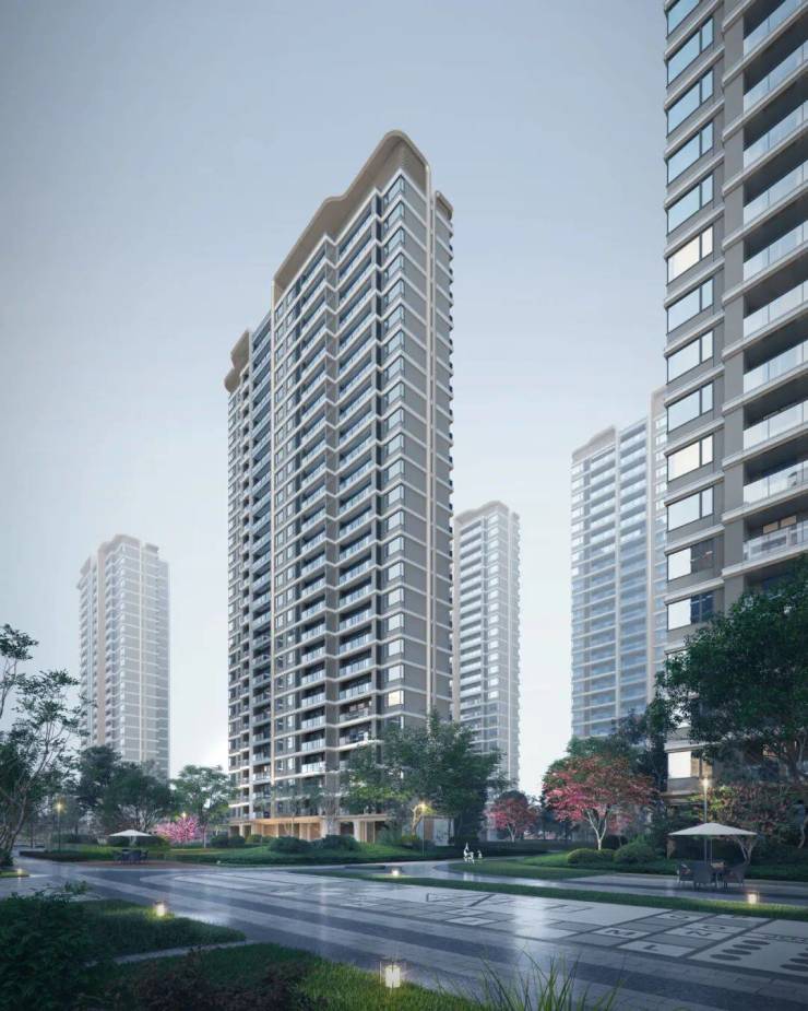 项目为公建化外立面,轻盈通透,凝结成一张不会“老去”的高级脸,远远看去,满是精致的腔调感。
