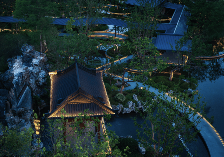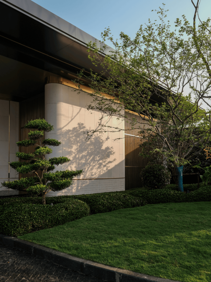 归家仪式,向来是豪宅必备。400米的天然玄武岩归家大道直达府邸,抬眼间便可看到无锡目前最大的酒店落客环岛式大门,整个大门南北宽约70米,尺度拉满。社区内部人车分流,园林纯粹感尽显。