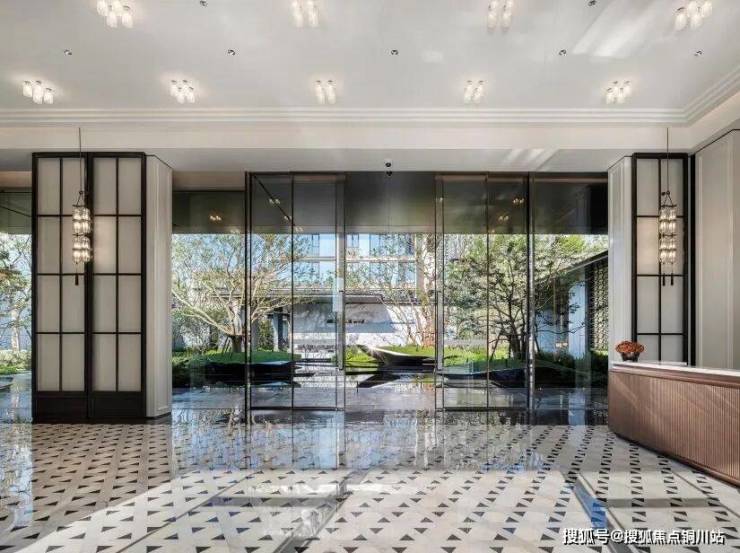 作为归家第一站,主入口大堂三层叠水,拾阶而上,穿过社区大堂,三座漂浮岛屿对应中国传统园林“一池三山”,归家的轨迹,遍布长江的丰美气韵。
