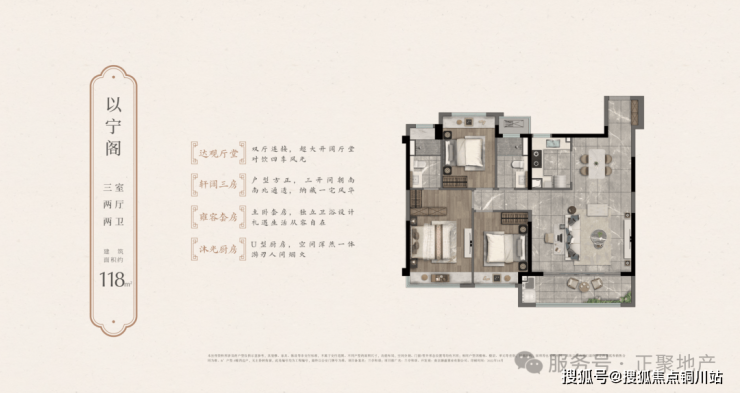 兰亭和颂118户型乃是板块内,唯一120平以下,能做到整体横向开间达约12.1m,客厅开间达约5.35m的户型。