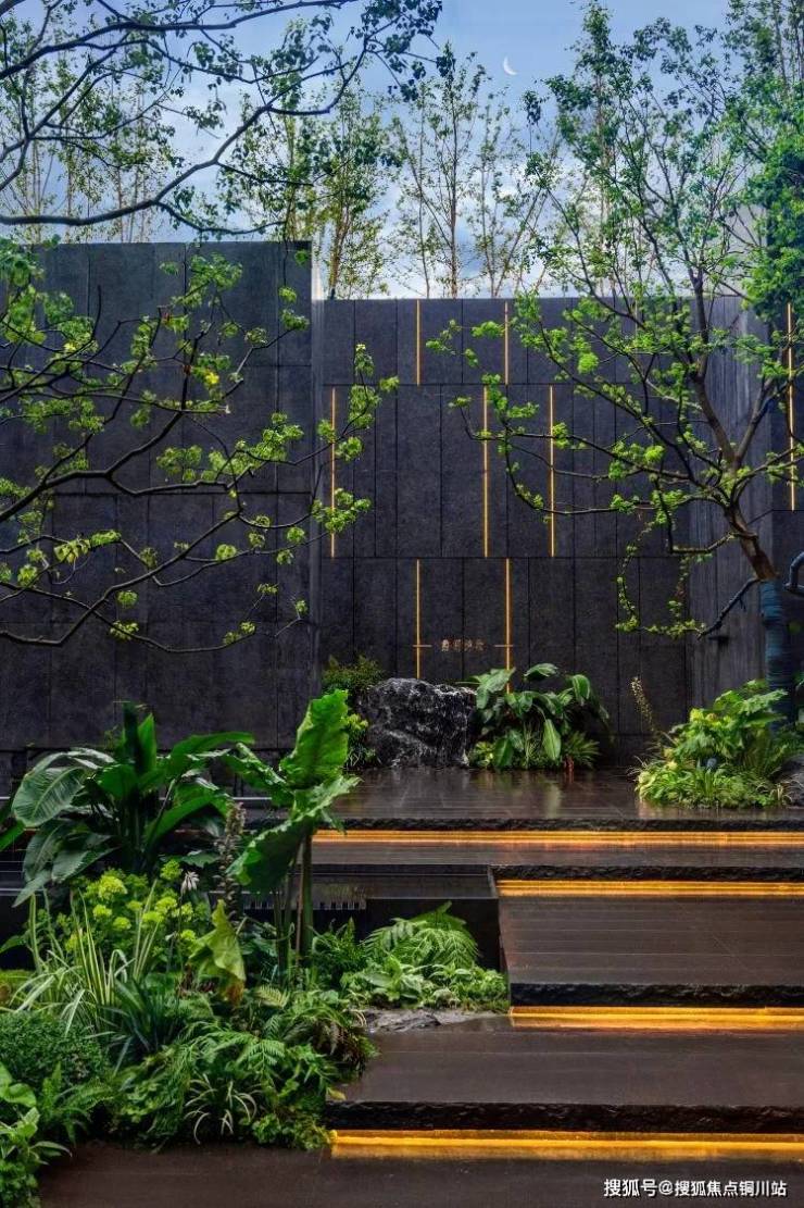 下沉式庭院乌桕乔木,与林下休憩区、瀑布景观以及禅意茶室等特色元素,巧妙联动。