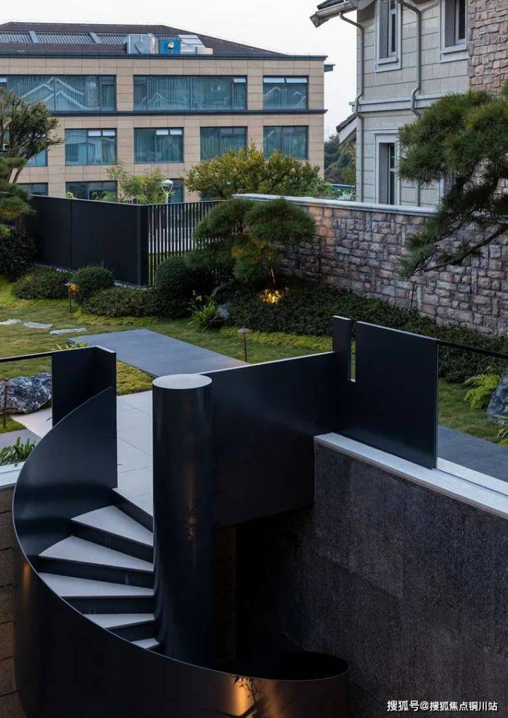 大宅首先要处理的是空间的解构问题。由于房子带有错层设计,可变化区域并不多,而业主要求将电梯通达每个空间,又要规避风水问题,这就给改造带来了障碍。设计者在原有的楼梯动线附近,施设了双向观光电梯,而楼梯则用环形围绕形制,与建筑外观一起保证优雅现代的视觉效果。