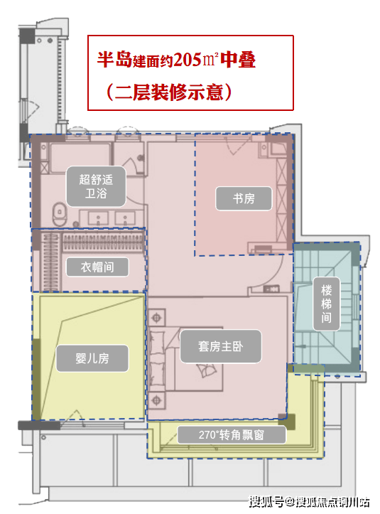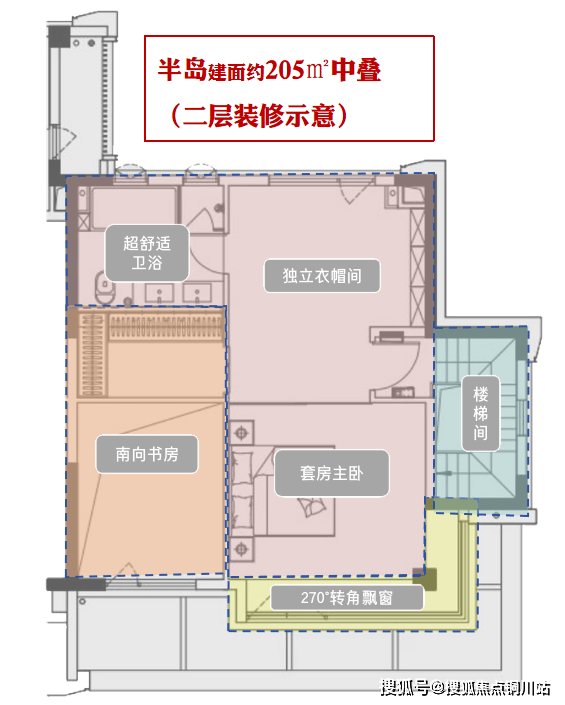 以这套建面约205㎡的中叠来看: