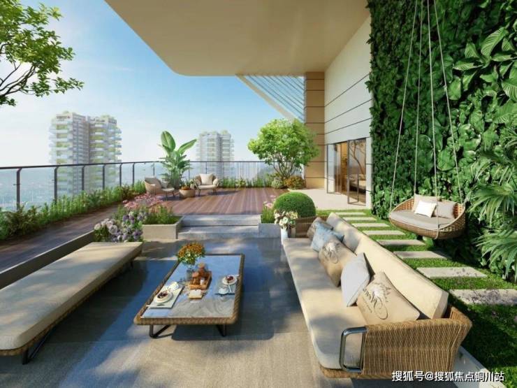 在高得房率之外,四代住宅以超大露台为契机引发一场「户型变革」:让超大露台纵向深入到户型空间格局之中,露台与客厅、餐厅、厨房或卧室交融在一起,打破室内外空间的边界,实现稀缺的「室内外无界交融」。「垂直森林」的设计,加强了人与阳光、绿地等自然元素的联系,让高层建筑也能实现传统意义的「有天有地」的别墅生活。同时,更多可使用的空间,也增添了新的生活场景,将「生活浓度」拉满。