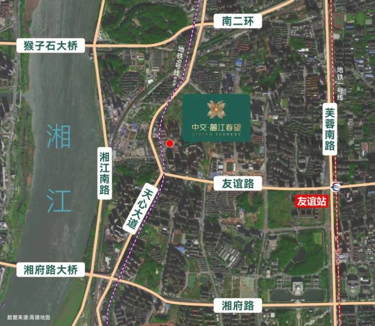 交通方面,项目毗邻地铁1号线友谊路站,周边有天心大道、南二环、芙蓉南路、湘府路等城市主干道,路网发达,出行便捷。