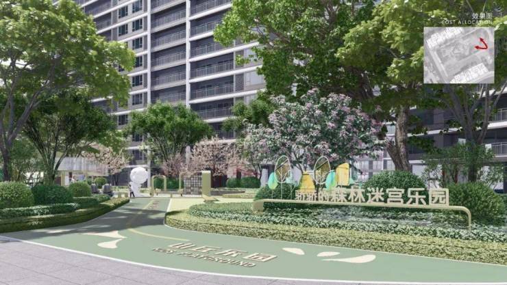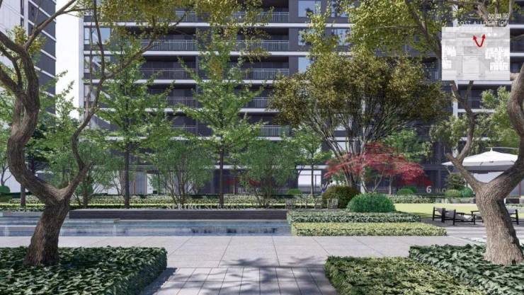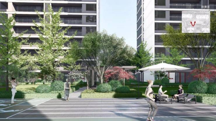 于小区内,项目规划设计两条景观轴,串联五大沉浸式花园空间,全龄共享,老少同乐,打造城市中心的度假绿洲。
