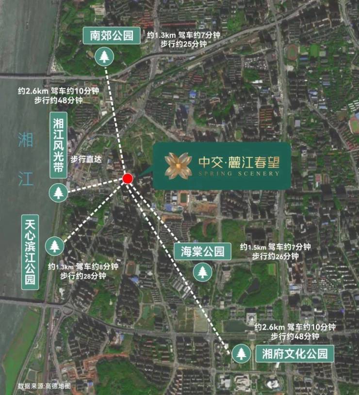 生态休闲方面,项目西侧约800米即是湘江风光带、天心滨江公园,步行即达;北临南郊公园,还有海棠公园,湘府文化公园,三馆一中心等文化休闲场所,周末假日休闲遛娃不愁没去处。