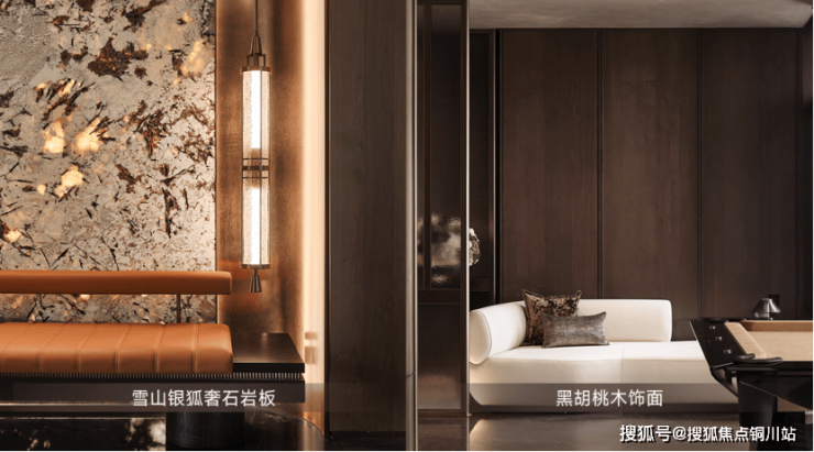 工法工艺上,项目以星级酒店的匠造标准重塑公区质感,雪山银狐奢石岩板背景,黑胡桃木饰面上墙,石材水刀拼花铺地,非遗工艺螺钿漆画装饰,升级美学质感,让尊崇感遍及每一个日常。