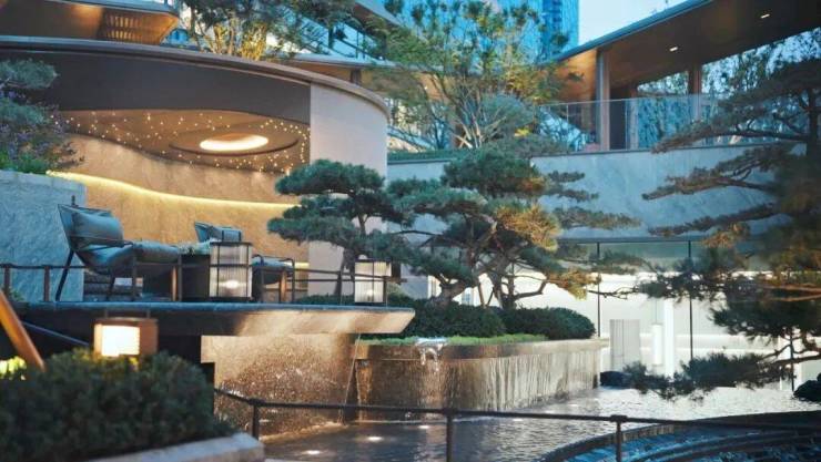 项目的园林景观,不仅够细致,还够磅礴,“两轴七巷十二景”将“城市山林”延伸到社区的每个角落,奢隐立体、层层递进的动线设计,带来感官体验和视觉印象上的双向冲击。