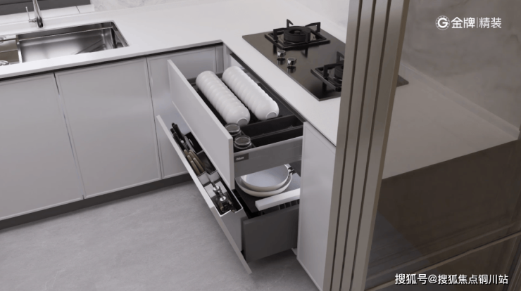 厨房是家中收纳的主要阵地,大小电器、锅碗瓢盆、琳琅调味,皆需妥帖安放。春来晴翠园的“厨房动态收纳模块”,让烹饪挥洒自如,尽享高阶烟火气。