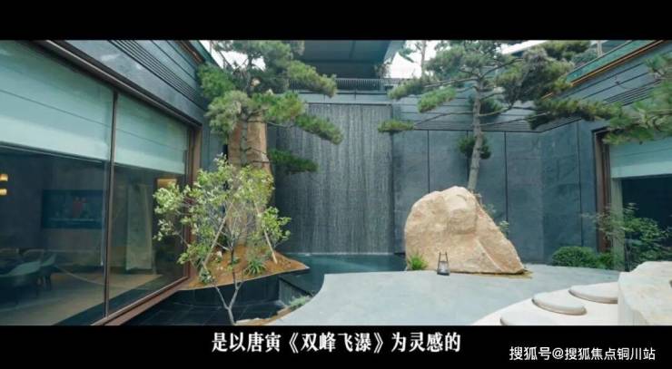 步入门厅,映入眼帘的,是以唐寅《双峰飞瀑》为灵感的下沉式庭院。