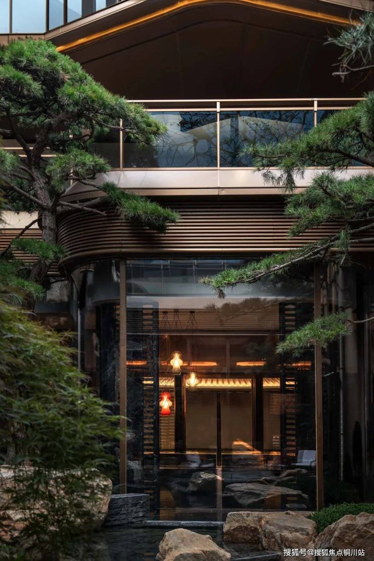小区大门以黑松迎宾,通过院落景观实现归家心境的转换,营造出宁静而温馨的氛围。