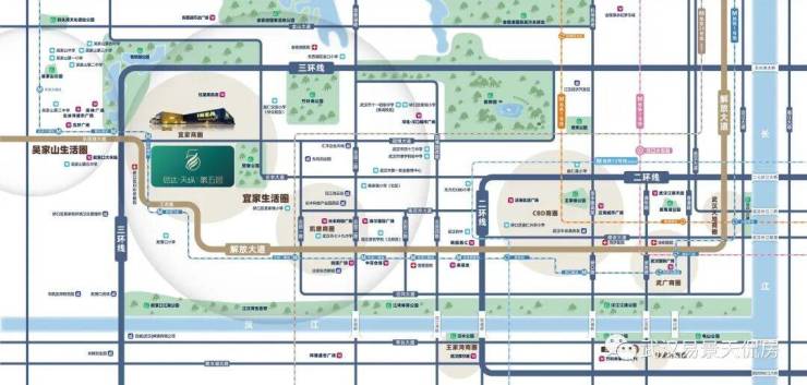 多维路网:“两环三道一高架”立体交通路网,黄金主轴解放大道、园博大道、三环线和长丰大道高架衔接二环线,轻松通达武汉三镇