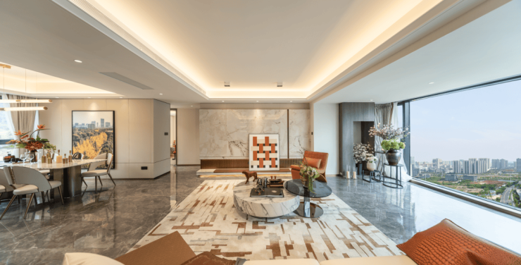 空间设计:户型设计方正,南北通透,全明格局,采光充足,拥有挑高客厅、独立玄关、观景落地窗等,部分户型还做到了 270° 极致采光。