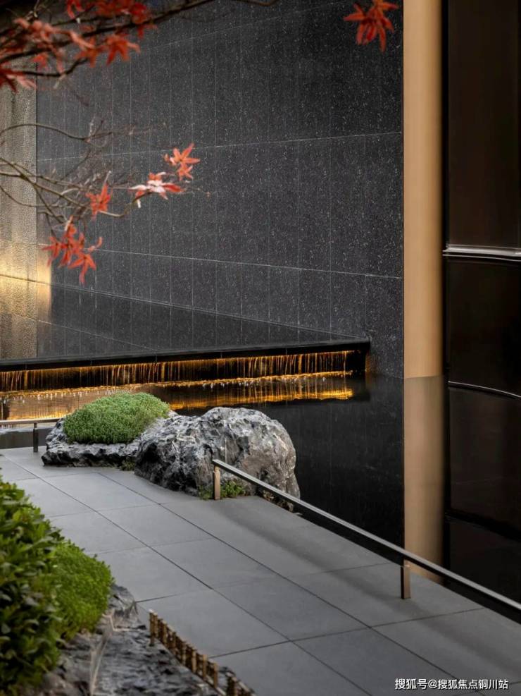 临水垫步,衔接山水亭廊,使游人置身在小桥流水的闲情中。听泉观瀑,流动的泉水“泠泠”声脆,为空间营造一处观景之地。身处其间,好似漫步山野之间,感受自然间的瀑布流水,繁忙的生活节奏在此得以放缓,享受片刻的宁静与惬意。