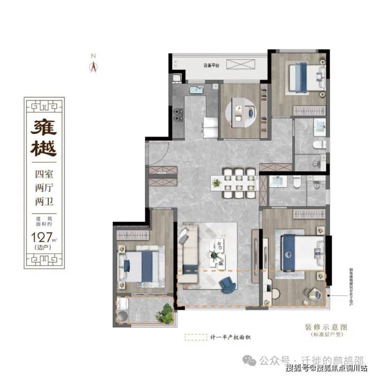 129㎡四室,7.3米双阳台,赠送面积约11.23㎡;