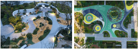 童梦戏水区以乌桕森林下的互动水景为特色,融入海绵城市设计理念,利用雨水收集系统形成兼具科普与娱乐的戏水空间。