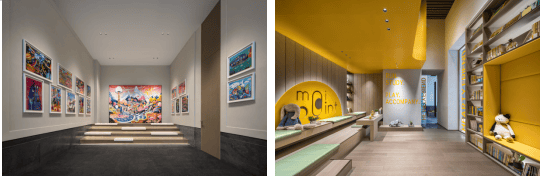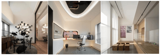 该项目架空层规划为约2000㎡多功能区域,包括阅读书房、运动健身区、儿童游乐场以及派对屋等,使得架空层成为家庭功能的有效拓展与延伸。