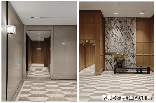 上海前滩润璟在地下空间将海派风格从地上延伸至地下,形成全维度体验链。地下车库采用环氧水磨石地面 ,石材颗粒与地上公区拼花纹理呼应,复刻老上海石库门地坪的细腻质感;顶部设计摒弃传统星空顶,采用整块铝板吊顶 ,以无缝工艺实现车道全覆盖,金属光泽与地上建筑立面的陶砖、石材形成冷暖对比,强化海派美学中的材质碰撞;地下大堂墙面木饰面与首层同款,门牌壁灯经 3轮打样 ,嵌入立体浮雕标识,实现“无盲区”风格渗透。
