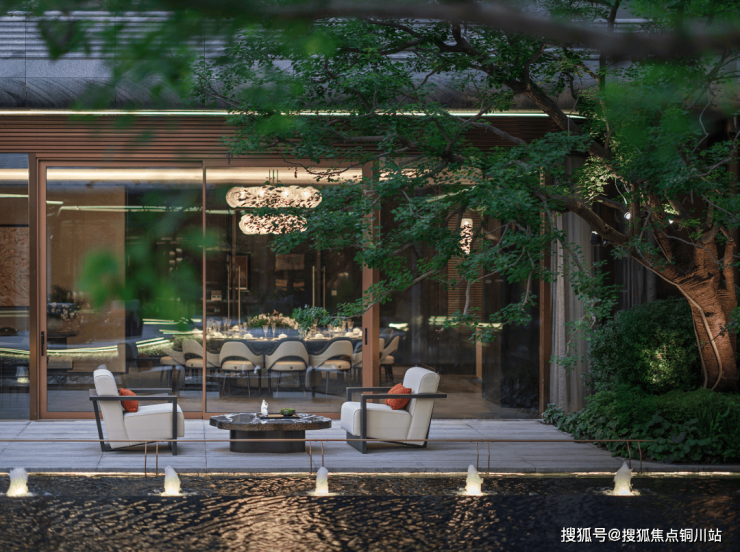 立于下沉庭院之中,业主可独坐树下,手捧一杯清茶,听流水潺潺,赏世外桃源,妙哉、美哉。