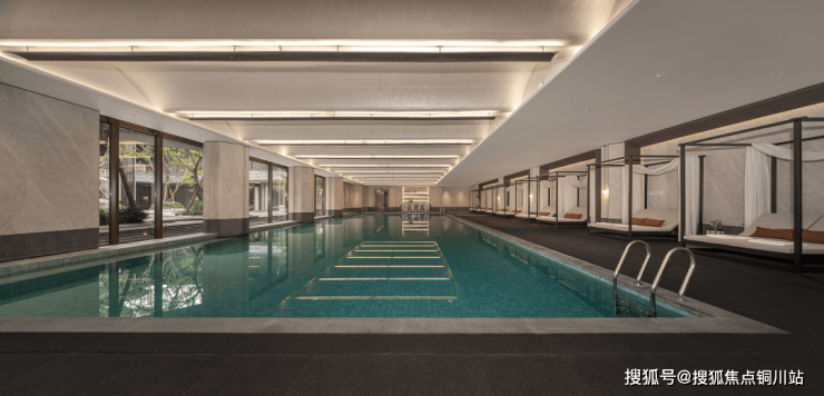 约2000平的下沉式会所,由梁志天亲自主笔,堪称高阶城市会客厅,健身房、瑜伽室、理疗室、恒温泳池、私宴厅、红酒雪茄吧、茶室、影音室、女王下午茶空间等功能一应俱全;