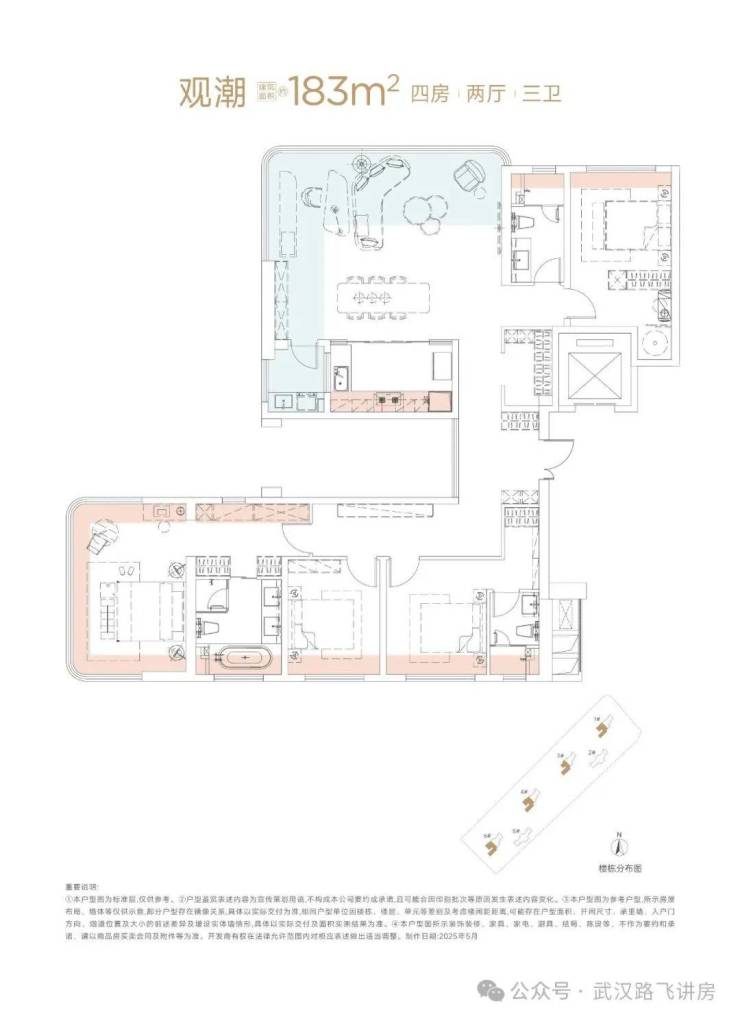 项目只有建面约143㎡和183㎡两个户型,是纯改善楼盘中的豪宅定位。