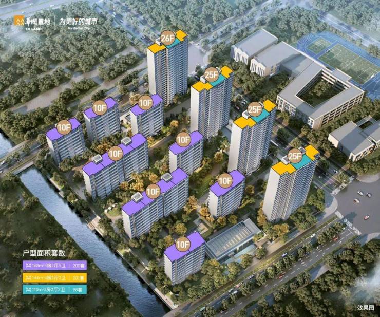 产品类型:12栋10-26F住宅,其中8栋10F洋房、3栋25F高层、1栋26F高层