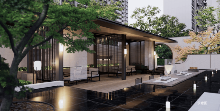 • 根植于当地文化、地脉、气候等特质,打造苏式新韵园林景观,并配以古樟等林木,以探林入姑苏为线索,呈现姑苏园林精雅韵味的意境