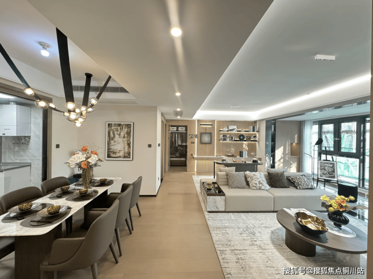 大横厅叠加宽景大阳台的设计,不仅可以享受到窗外IMAX视野,也增强家庭互动性,将家人聚在一起的空间尽可能扩大。