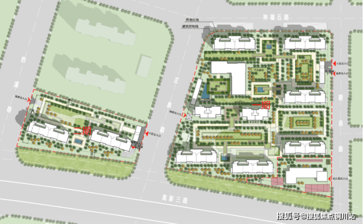 和汉韵公馆类似,项目从大门进入后,即2F的会所(1F以后会是物业用房,2F为体育馆),会所连接下沉庭院,但是和汉韵公馆不同的是没有风雨连廊的配置,整体的公共空间有限,也是受地块面积所限。
