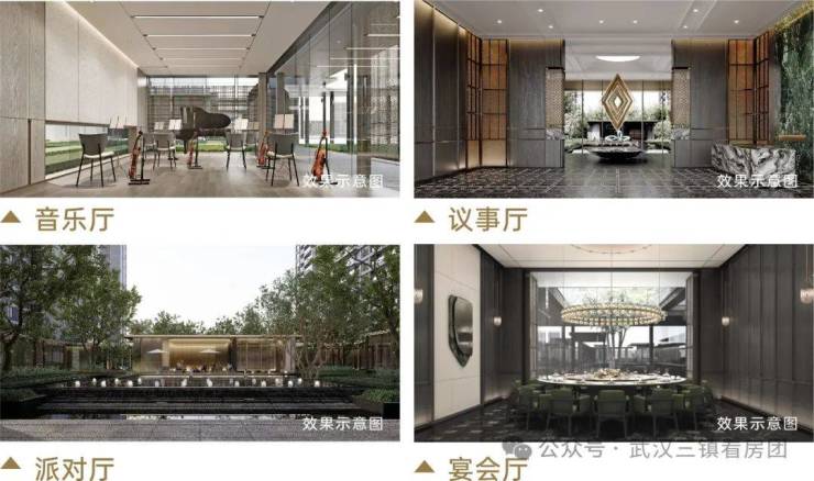 本案凭借超前理念,将酒店式社交场景融入社区配套,把“私域会所体验”融入主题架空层。三馆四厅”的超配主题空间,构建更有温度的“菁英社区”,为城市菁英圈层营造豪宅式生活场景。