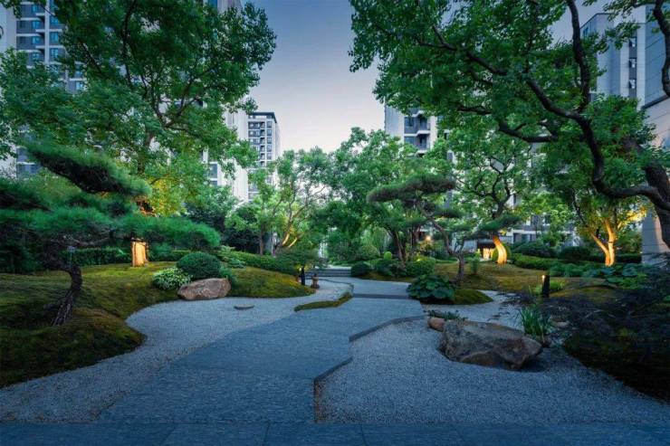 南北归家主轴、约1700㎡中央森林花园、极具造型感的乌桕、黑松、古石榴、娜塔栎等珍植苗木......都已经能让每一位业主亲自体验,感受自然的松弛感。