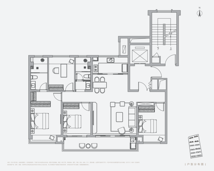 项目仅打造了建面约142㎡一个样板间,四房两厅两卫设计,后期整盘毛坯交付,样板间仅供参考。