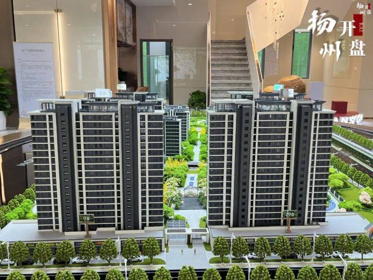 据置业顾问透露:沿着邗江中路一侧的几栋楼外立面是石材到顶,还有玻璃幕墙+铝板,里面几排是真石漆+玻璃幕墙。