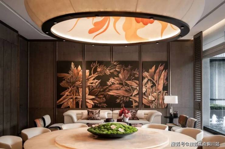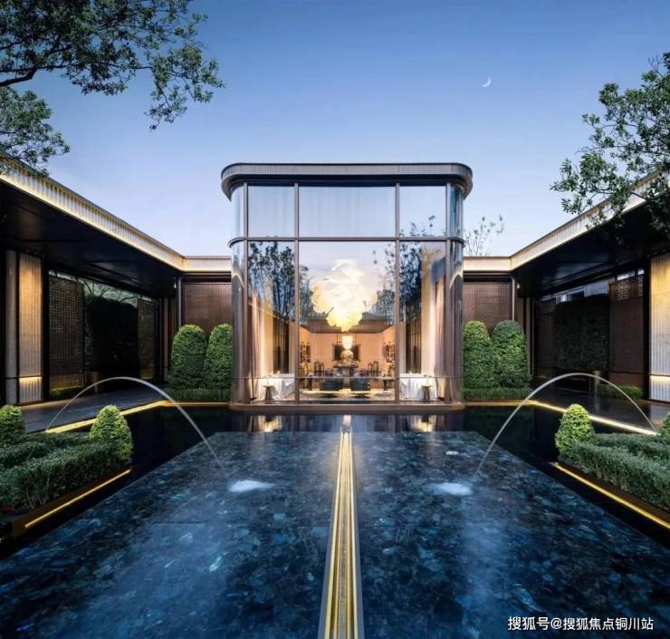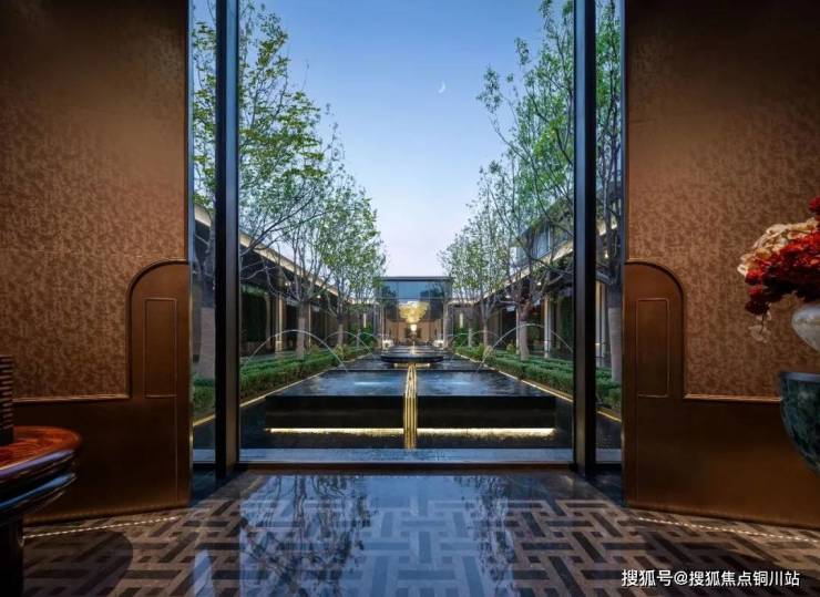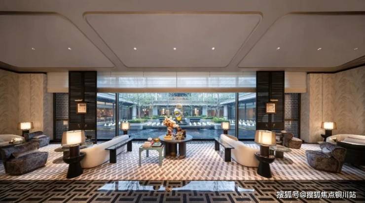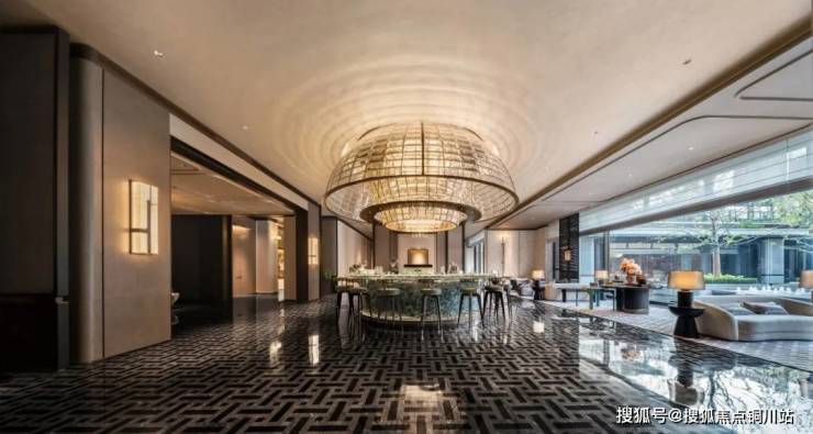 会所大堂当然也是正对着下沉式庭院。紫金·翡丽甲第选用的落地窗,最大的一扇落地窗达到了7.7米宽,把下沉式庭院的水光和天光,无限收入室内。到了晚上,空中会弥漫着鎏金岁月的气息,泳池中的那轮圆月,就在你眼前,照耀着在月光中畅游碧波的人。